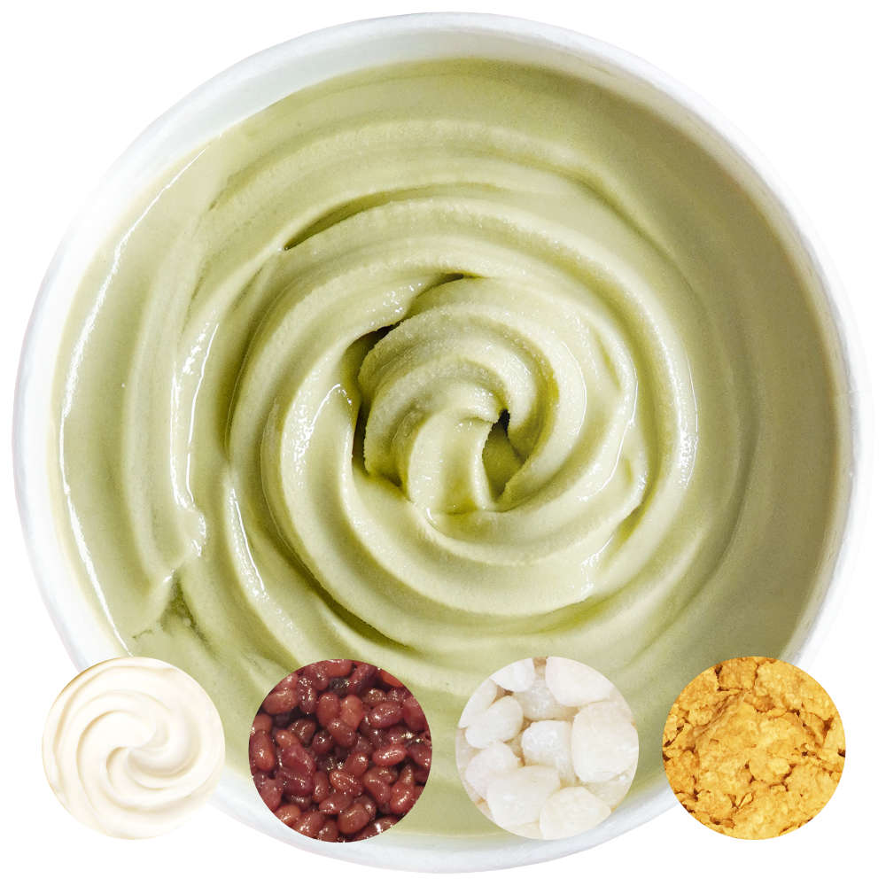 1 pint (16 oz.) of Red Mango’s limited edition Matcha Frozen Yogurt topped with Rock Salt Cream Cheese, Red Beans, Mochi Balls, and Cornflakes.